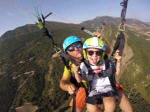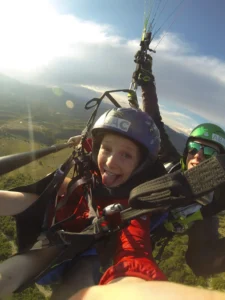 Le biplace spécial pour les enfants de 20 à 40 Kg et des 5 ans. Le vol KIDS est un vol en parapente pour les plus petits, dans des conditions très calmes du matin, pour apprivoiser les airs en toute sécurité avec du matériel adapté à leur poid et leur age. Les enfants doivent être capables d’exprimer par eux même leur envie de voler . En général, ils sont encore plus rapidement détendus que les adultes.